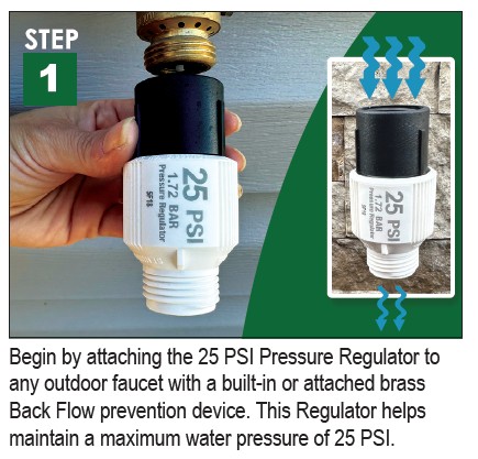 4) Pressure Regulator: When using our In-Line Dripper tubing in this kit, we highly suggest using the enclosed 25 PSI Pressure Regulator (MLD-25PR).