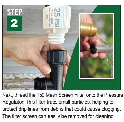 5) The150 Mesh Filter (MLFF-41) that is included in the kit is suggested for In-Line Dripper Tubing and Drippers, or when using our products with "well" water.